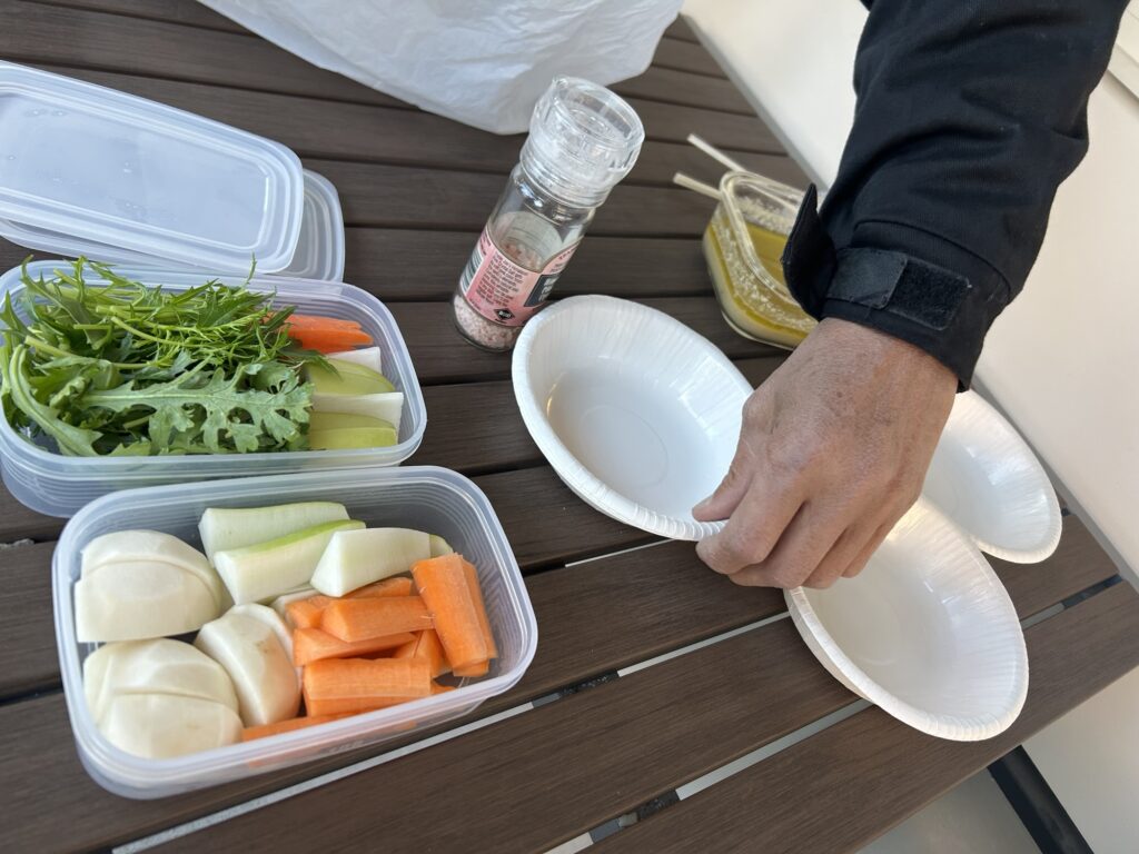 「いつもの味ー」とちゃんとスーパーの野菜を当てる子どもたち。