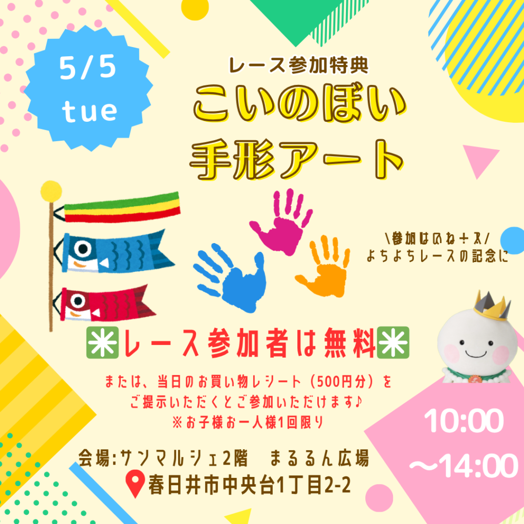 また、はいはいレース&よちよちレースに参加してくれた小さなお子さんには、無料で、こいのぼり手形アートのワークショップも準備しています!!