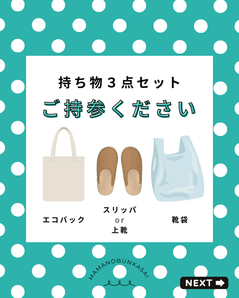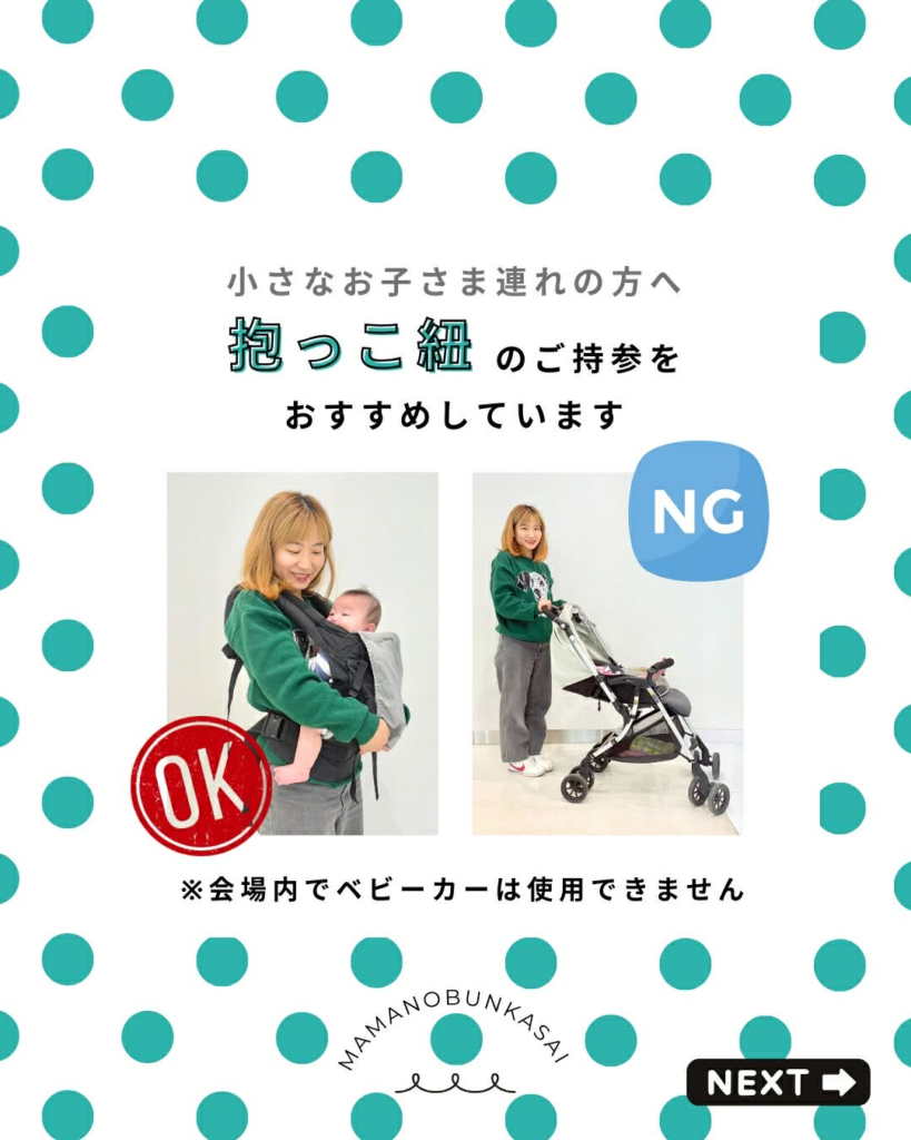 ・抱っこ紐(赤ちゃん連れの方のみ) ・レジャーシート(飲食でご利用になる方のみ)