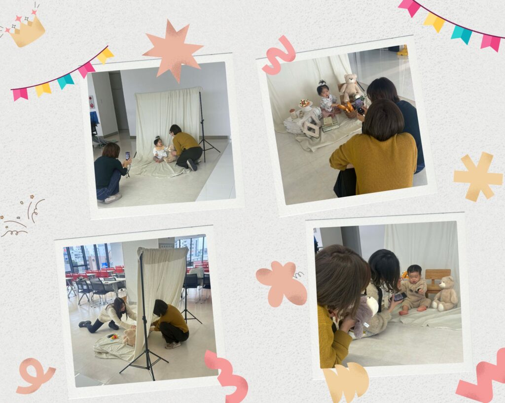 開催時間の1時間の中で、時間があれば何回か撮影チャレンジすることができますので、最初にご機嫌斜めなお子さんは少し時間をおいてから撮影することも可能です☆彡