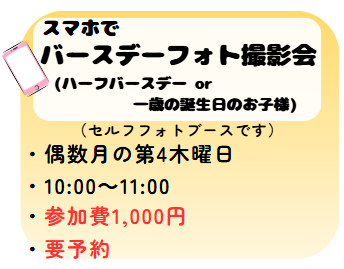 バースデーフォト撮影会 偶数月の第4木曜日(※要予約)
