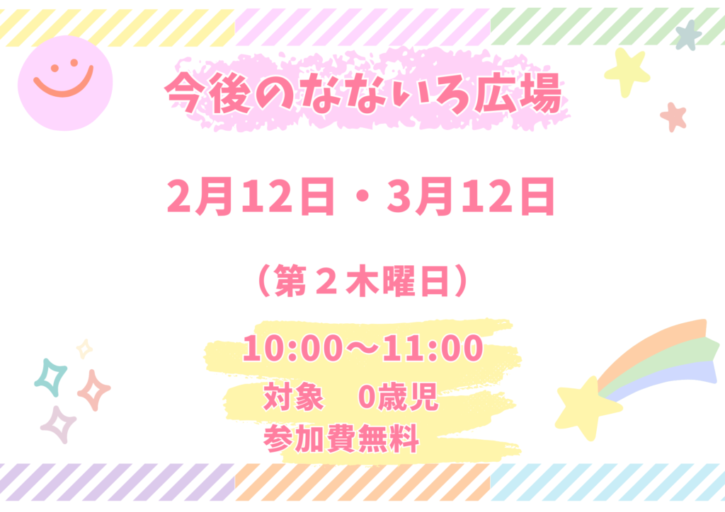 『なないろ広場』(0歳児対象)の2月の開催日のお知らせです。